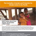 Join us at the #COP23 Featured Event for a discussion on centrality of gender & protection for #ClimateAction in #Pacific organised by @UNDP pic.twitter.com/rkaRKARWuS