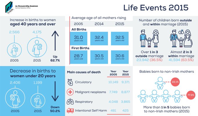 Vital Statistics Annual Report 2015. Average age of mothers continues to rise cso.ie/en/releasesand… pic.twitter.com/IkoUBs6bvf