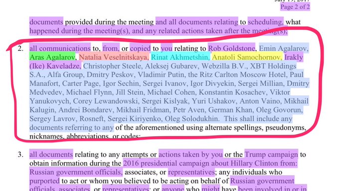 Senate asks Uday #Trump for ALL communications w/a YUGE list of names.