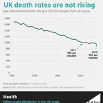 This is correct, but after accounting for the changing size and age structure of the UK, rates of death have stayed about the same since 2011.