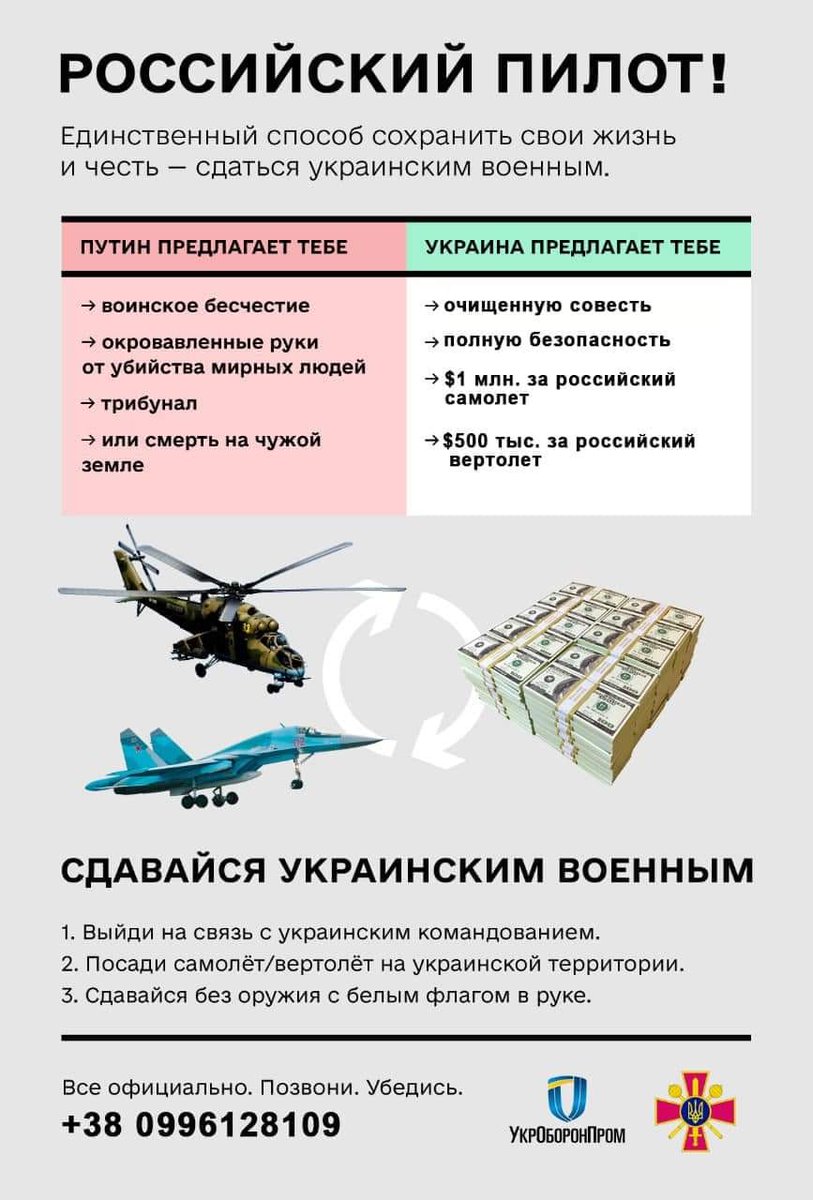 РОССИЙСКИЙ ПИЛОТ, СДАВАЙСЯ УКРАИНСКИМ ВОЕННЫМ! единственный способ сохранить свои жизнь и честь! https://bit.ly/3i1JmOZ pic.twitter.com/M27YbzIVBq