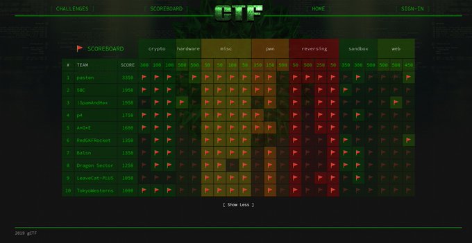 CTF players, bug hunters and students descended onto London to play, hack and learn. Congrats to @pastenctf for winning - again! :) #googlectf #initg pic.twitter.com/9UyiFG7ngb