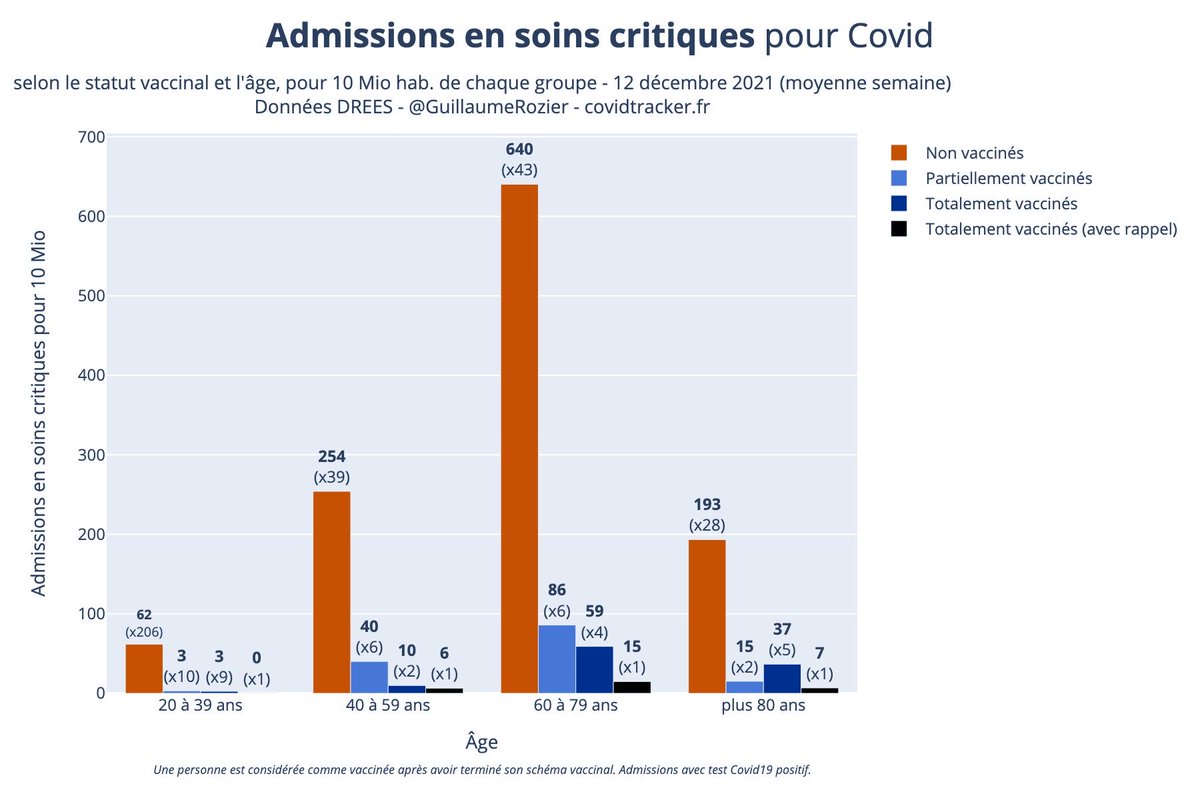 Sur-risque d’admission à l’hôpital chez les non vaccinés par rapport aux vaccinés avec rappel : 20-39 ans : 15 fois 40-59 ans : 25 fois 60 à 79 ans : 30 fois +80 ans : 29 foispic.twitter.com/MmrpyW0elv