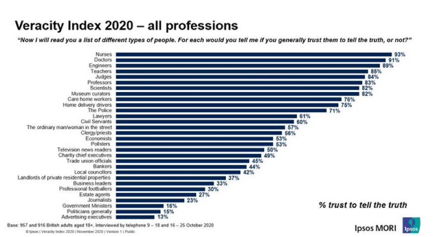Poll was taken of English voters which is why journalists are so high, do it in America and watch them sink to rock bottom