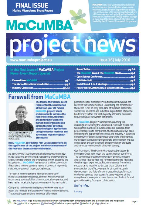 Our Final Issue of #MaCuMBA Project News is Now Available! See goo.gl/2vixSh #marinemicrobes #microbiome pic.twitter.com/wz0jVyT54P