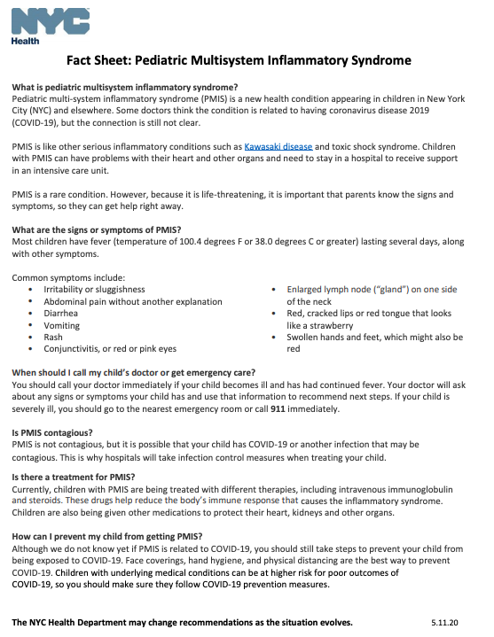 Información en español sobre este síndrome pediátrico:https://twitter.com/MarkLevineNYC/status/1261120086594801665 …