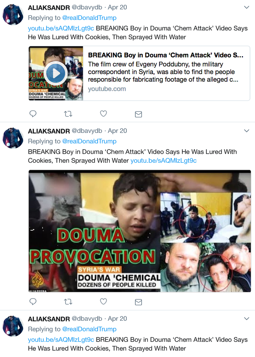Always take care and verify your sources ! After the chemical attack in Douma, an increase of 300 percent in twitter accounts was seen. More than an half were bot accounts spreading misinformation. Here, I send you the full report and an example. https://www.nonproliferation.org/wp-content/uploads/2018/09/op37-all-the-world-is-staged.pdf … pic.twitter.com/P0UqesERxH