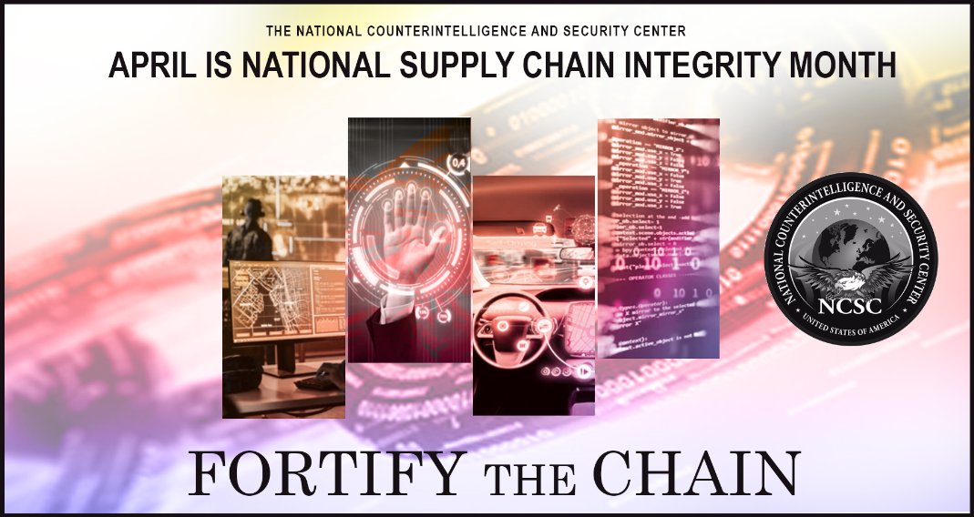 @NCSCgov and its partners in government and industry launched the 5th annual “National Supply Chain Integrity Month” awareness campaign for organizations across the country to “fortify the chain” against foreign adversaries and other threats. See: https://www.dni.gov/index.php/ncsc-what-we-do/ncsc-supply-chain-threats …pic.twitter.com/CputUaoMYd