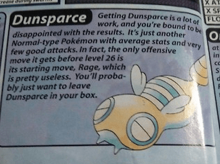 It hurts even more that Dunsparce hasn't really improved in the next games causing it to be that one pokemon that should of evolved by now.