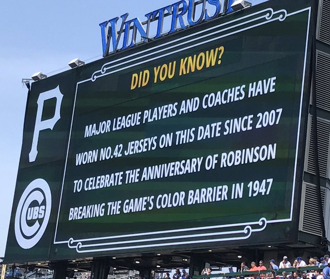 1st time at Wrigley. So inspired by #42 - also the answer to Life, the Universe & Everything. Coincidence?#JackieRobinsonDay #DouglasAdams pic.twitter.com/6RPTlTaRO0