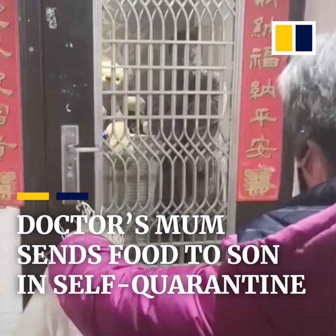 This mother in China broke down in tears when she was unable to hand food to her son, a self-quarantined doctor in Wuhan. pic.twitter.com/D9SjUJVPGy