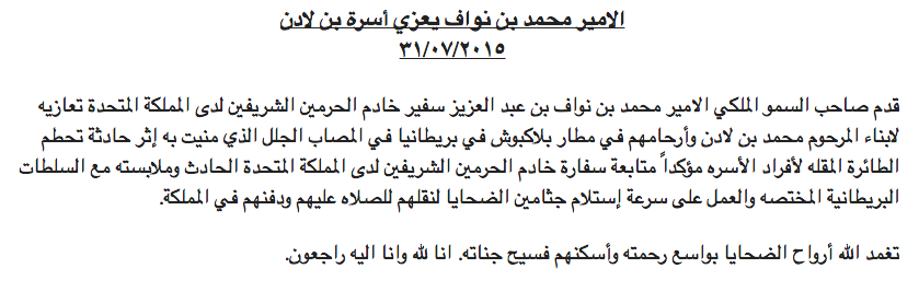 @SaudiEmbassyUK@JKhashoggi رحم الله سناء بن لادن الي جنة الخلد وأسرتها -