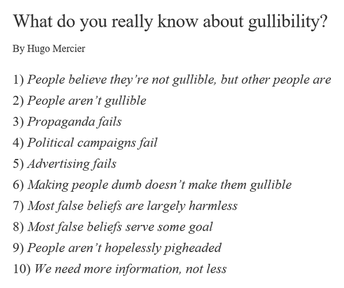 10 Things About Gullibility You Probably Don't Know. Great piece by Hugo Mercier, author of the forthcoming book Not Born Yesterday. press.princeton.edu/ideas/what-do-… HT @hugoreasoning @PrincetonUPress pic.twitter.com/2s4B9USXSS