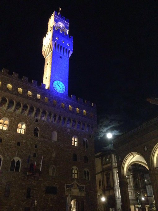 Palazzo Vecchio in Florence lit up in blue for World Refugee Day #WithRefugees pic.twitter.com/fRLens4SAI