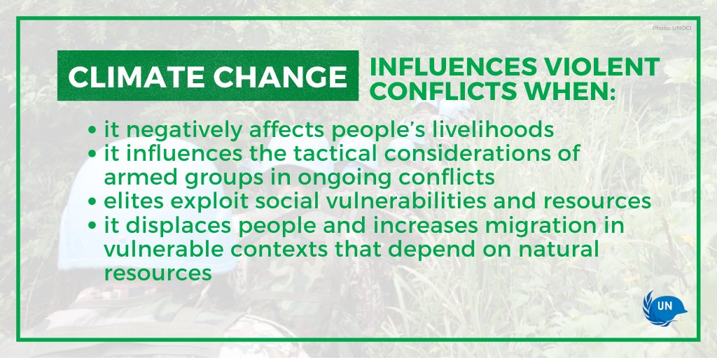 @UNEP suggests that in the last 60 yrs at least 40% of all intrastate conflicts have a link to natural resources? Although climate change is not a direct source of conflict, it is a threat multiplier that exacerbates resource scarcity & existing vulnerabilities.pic.twitter.com/aaXheNoFDN