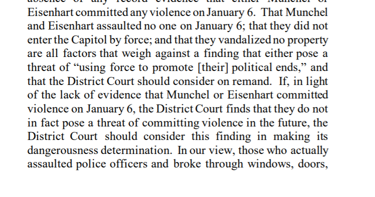 The ruling, which sent the issue of bail for Munchel (& his mom) back to the district court for more argument acknowledges the seriousness of Jan. 6 but wants "the facts & circumstances of each case" to be fully and fairly heard.pic.twitter.com/2JrJ99vMmi