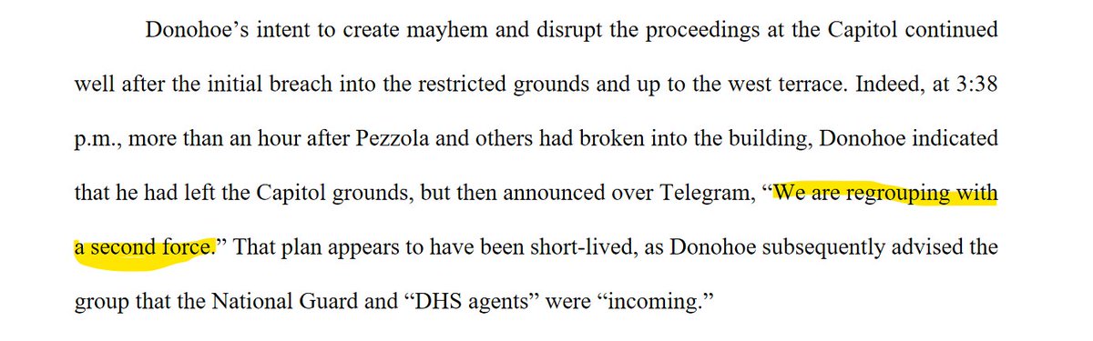 Prosecutors say that more than an hour after the Capitol was breached, NC Proud Boy leader Charles Donohoe announced over a group chat that he was regrouping w/ "a second force." But the plan was short-lived as Nat Guard and federal agents were "incoming," Donohoe wrote.pic.twitter.com/RWnA9id8ut