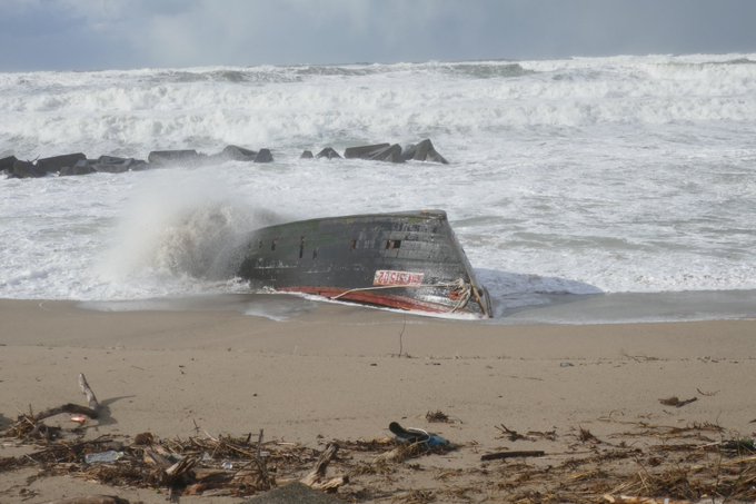 日本に漂流した北朝鮮の木造船。25日には新潟県村上市の瀬波海岸に小さな船が漂着した。乗員は全員が投げ出され、亡くなったようだ。家族は仕事に出たまま帰らぬ者を永遠に待つだけだ。少年もいただろうか。荒海に洗われる船を見つめ哀しみを覚える。 pic.twitter.com/0tTF563ilN
