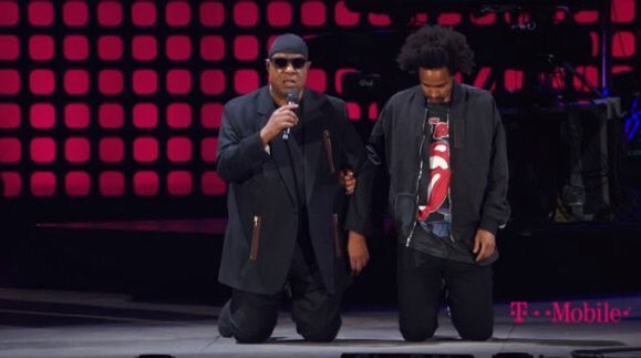 Stevie Wonder "takes a knee for America" at the Global Citizen Fest. This is a leader.