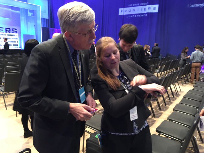 An honor to show @NIHDirector my #OpenAPS rig (in his hands) and the data visualizations on my watch. #WHFrontiers pic.twitter.com/qg0br49uIU