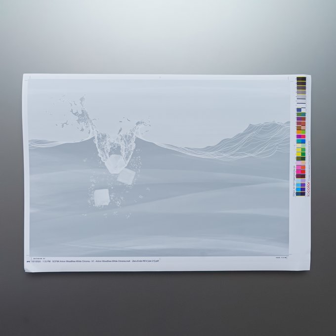 Sarah just finished up the end sheets (the two pages that secure the main book block to the cover itself). I generated the linework in Houdini – a combination of Tessendorf waves and a fluid simulation – and she hand-painted the ice cubes and the water textures) pic.twitter.com/Ik5GPyzlqp