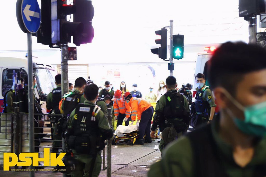 Around 9pm, while being intercepted in Sai Yeung Choi Street South, a man fainted suddenly, possibly due to heart issues. The man was subsequently being sent to Kwong Wah Hospital. En route from the scene to the hospital, he was unconscious.pic.twitter.com/tMcogXB6AF