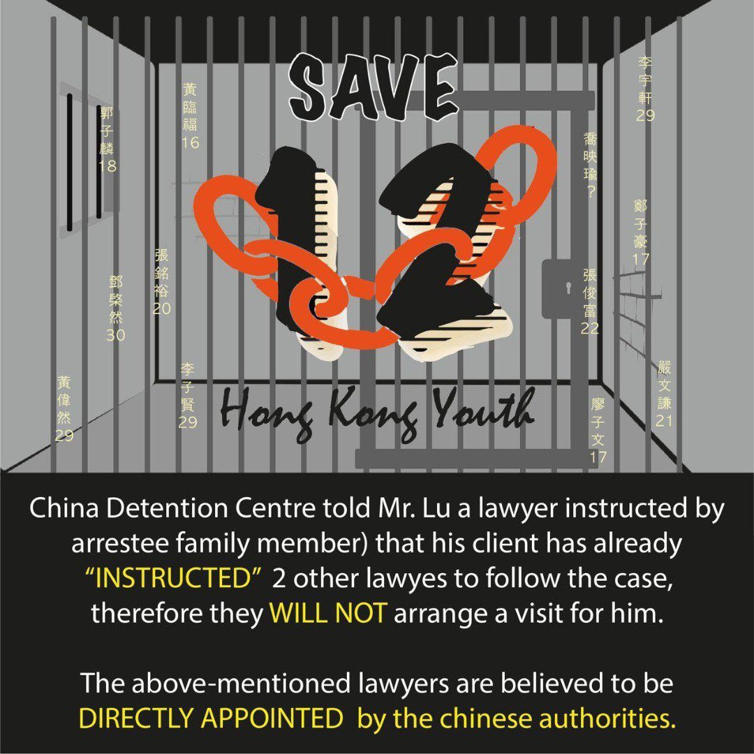 #terrible things happened to#12HKyouths that CPP even forbidden them to met Human rights lawyers....? And assign them ‘official’ lawyer....?#save12hkyouths#save12pic.twitter.com/vP9dpdxN4A