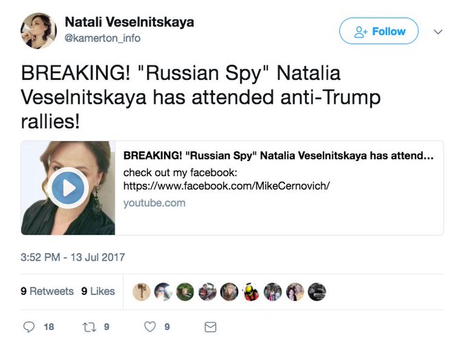 Guys. Take it from Cernovich - who's panicking about getting subpoena'd - Velenitskaya is TOTALLY not a Russian spy. Promise. #BrowderDay pic.twitter.com/vWrzpFcWDC