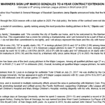 There will be a press conference tomorrow at 1 p.m. with Dipoto and Gonzales. #Mariners #TrueToTheBlue