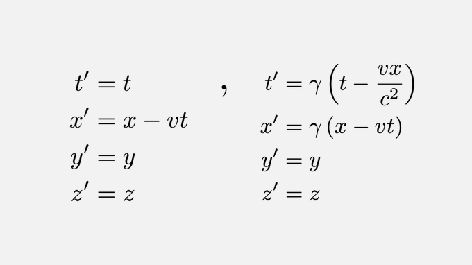 It took us 255 years to go from Galilean transformations for falling bodies to Lorentz transformations that are in accordance with Einstein's special relativity. pic.twitter.com/hY8F60VogW