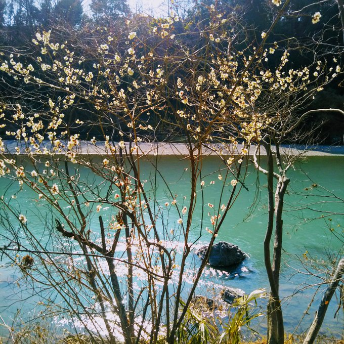 白梅が咲いて春の匂い。 #多摩川 の水色も川平湾みたい pic.twitter.com/WZNP66rJF2