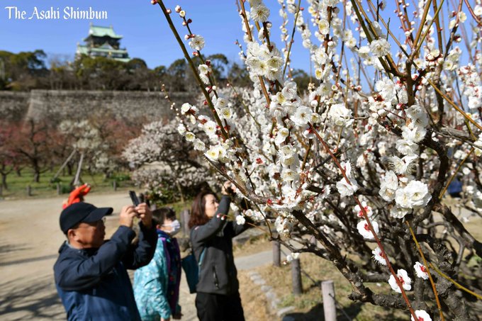 大阪城の梅林では順調に梅が開花。今年は暖冬の影響で、例年よりも早く咲き始めています。約1200本。100品種以上あります。大阪市内のど真ん中なので、アクセスは抜群です。 #大阪城公園 #梅林 pic.twitter.com/85dtH83LLL