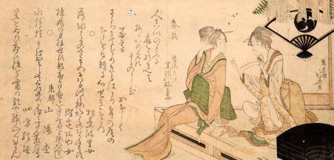 娘がお客に扇の地紙を勧めているのですが、紙に輪郭線がありません‼