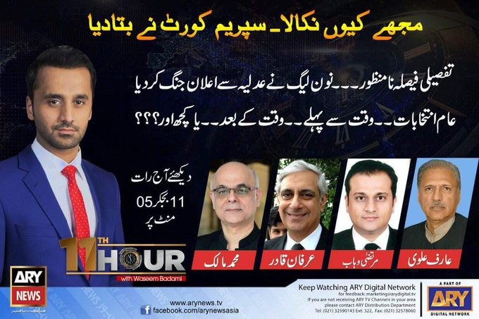 Watch #11thHour Special with @WaseemBadami live at 11:05 PM.