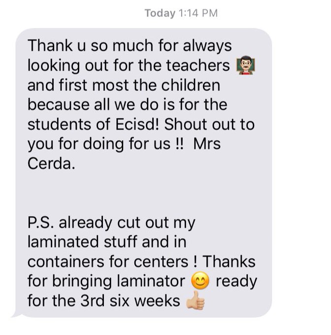 Thank you Ms. Cerda for your kind words! 😊 #ConnectwithECISD pic.twitter.com/29aSu2JsFM