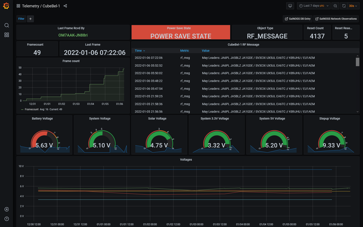 CubeBel-1 last 7 days Telemetry Huge thanks to
