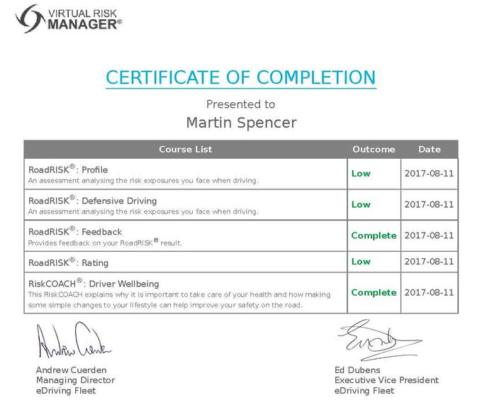 Pleased to be rated 'low risk' by @eDrivingLLC - part of a new initiative at @candmclub to keep us safe while #drivingforwork pic.twitter.com/vzLvGBzfd6