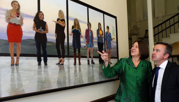 EU Transport Commissioner @Bulc_EU with @brianhayesMEP admiring the Women on Walls exhibition yesterday at @RIAdawson ahead of #EUDialogues pic.twitter.com/lWrzje5vyc