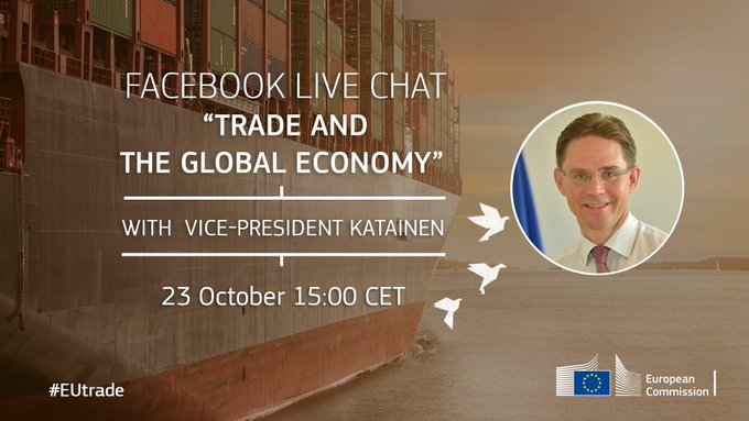 Interested in trade & the global economy? Join @JyrkiKatainen at 15.00 in Facebook live chat: facebook.com/EuropeanCommis… #EUtrade #EUdialogues pic.twitter.com/ZUCWpswiIS