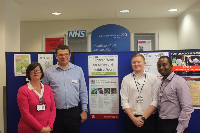 The Trust's Health and Safety team are running an information stand today for European Health and Safety Week. Stop by Grosvenor Wing reception to see them and learn more #EUhealthyworkplaces @EU_OSHA pic.twitter.com/KHvCaGLCq7