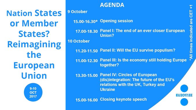 Today in Tallinn: Conference 'Nation States or Member States? Reimagining the #EuropeanUnion' #EUrethinkEE #EU2017EE eu2017.ee/academic-confe… pic.twitter.com/KUSwCvGdts