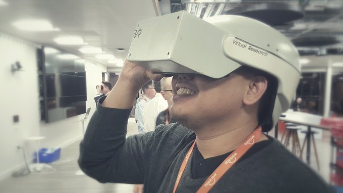 Back to the future. Thank Peter for bringing this 1993 #VR headset to the @3Dcamp and #IrishVR meetup! pic.twitter.com/KDlZvIKBs8