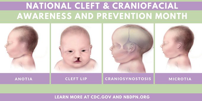 National Cleft & Craniofacial Awareness & Prevention Month. These conditions affect thousands each year. bit.ly/2bSq8LD #NCCAPM pic.twitter.com/W6pvc72v5j