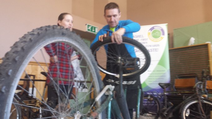 Bike Repair workshop on now in Scouts Hall #reusemonth pic.twitter.com/Z3GGydVYlu