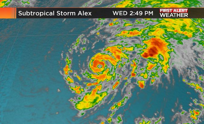 A deep cold-core extratropical cyclone drops down into the subtropics. #StormBrian may transit into a subtropical storm Alex alike. pic.twitter.com/Ykum8vJngq