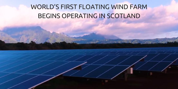 Scotland is now home to a £200M floating offshore wind farm - the first in the world! ow.ly/uLim30fYXVF #renewables #sustainability pic.twitter.com/Yo2Rld3tPe