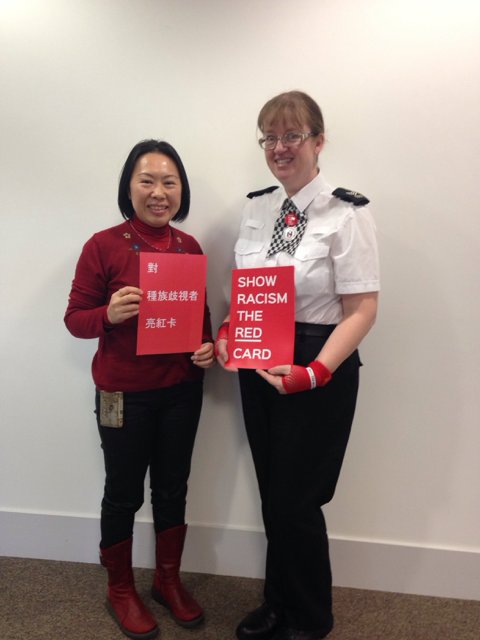 SHOW RACISM THE RED CARD BY WEARING SOMETHING RED TODAY #WRD17 @Merseytravel #Travelsafe #NHCAW pic.twitter.com/odge5axMWT