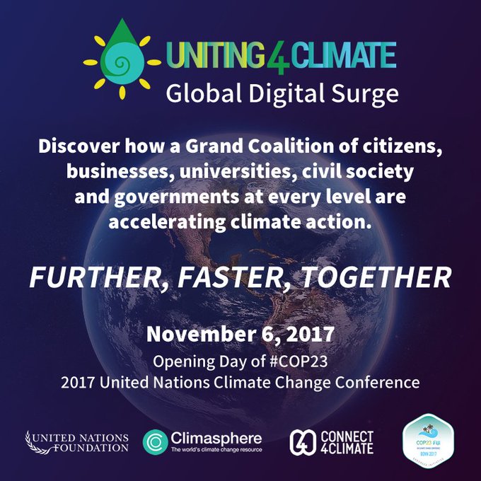 It’s time to accelerate #ClimateAction further, faster, together. Join the #Uniting4Climate Global Digital Surge: bit.ly/2h4BRLp pic.twitter.com/Pi0s2qWzqP