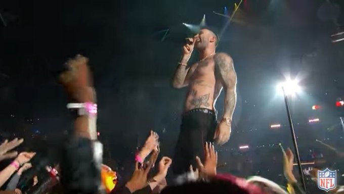 Everyone bitching about it being vulgar, slutty, etc, did you have anything to say last year when #AdamLevine was literally half naked on stage?