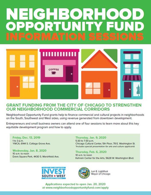 #Chicago Dept #Planning & #Development info session about #Neighborhood #Opportunity Fund THURSDAY, Feb 6th! meeting will provide background on Program, its #eligibility #guidelines and to provide #guidance on how to complete #Application.www.neighborhoodopportunityfund.com/apply pic.twitter.com/6I7CWGpUBv